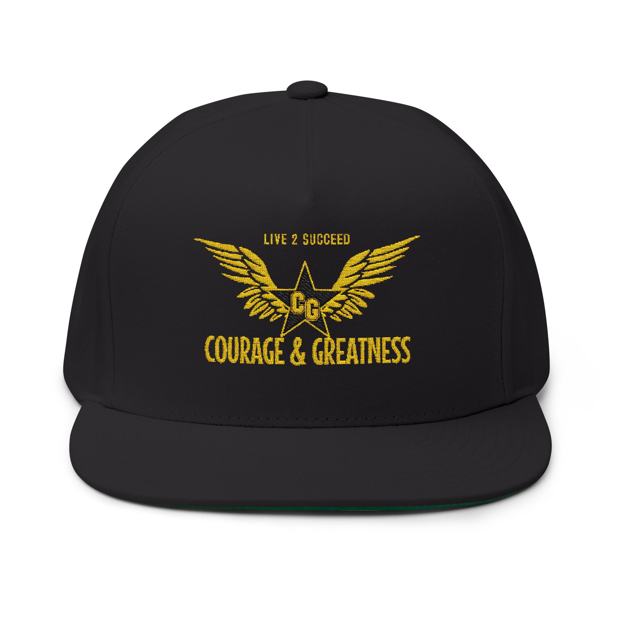 Courage and Greatness (Black, Gold) Unisex Flat Bill Hat